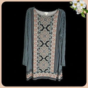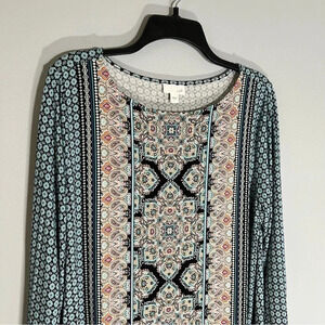 J Jill Tunic Women Sz Large Paisley Damask Boho Flowy Knit Travel Top Lagenlook