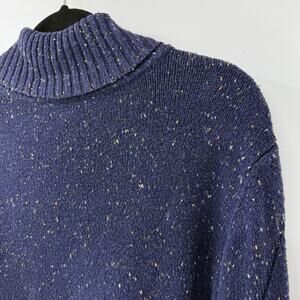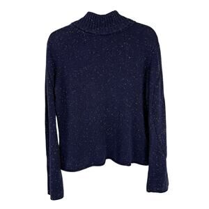 J Jill Turtleneck Sweater Medium Blue Confetti Knit bell Sleeve Vintage made in Hong Kong