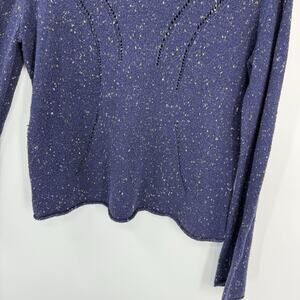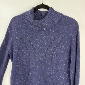 J Jill Turtleneck Sweater Medium Blue Confetti Knit bell Sleeve Y2K Gorpcore Vtg