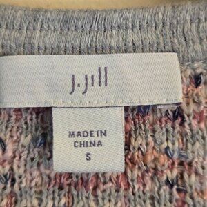 J. Jill Tweed Pink Gray Cotton Blend V Neck Cardigan Sweater Size S