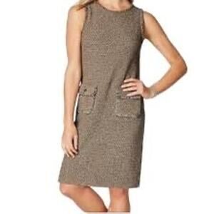 J. Jill Tweed Sleeveless Knit Dress Brown Black Shift Dress Size Small