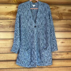 J Jill Utopia Patch Pocket Cardigan Medium Long Sleeve Chunky Knit Blue $119