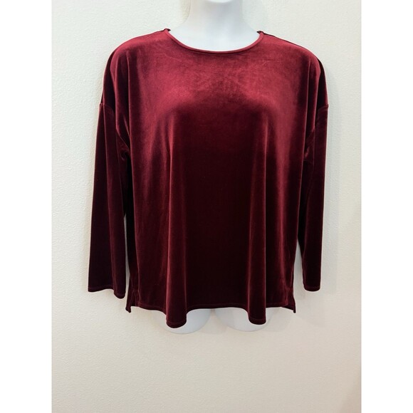 J Jill Velvet Top Sz XL Velour Long Sleeve Red Knit Stretch Tunic Holiday Event