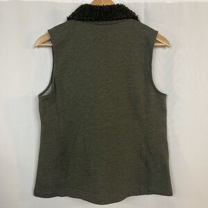 J Jill Vest Womens Medium Olive Green Faux Fur Collar Button Up Boho
