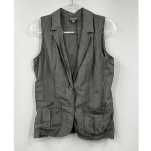 J. Jill Vest Womens Olive Green Silk Linen Sleeveless Top Size Small