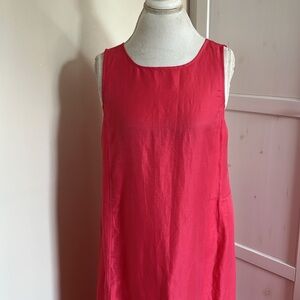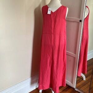 J. Jill Vibrant Pink Sleeveless Scoop Neck Midi Linen Blend Sundress NWT Size L