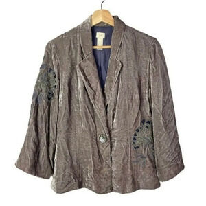 J. Jill Vintage Y2K Brown Crushed Velvet Floral Embroidered Blazer 10