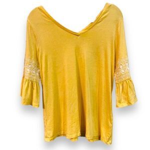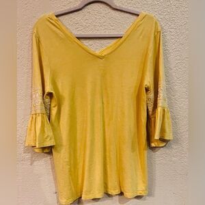 J. Jill V-neck Blouse Women’s Sz Small-Large Yellow Flutter Sleeves Embroidered