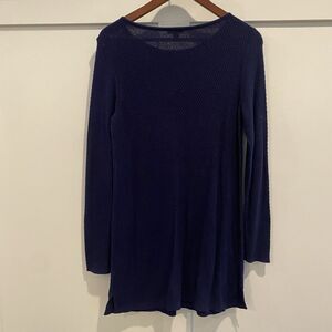 Elevate your coastal look with this J.Jill Waffle Knit Tunic Sweater in XS. The blue long sleeve top is perfect for a beach day or a casual outing. The pullover style with a round neckline and solid pattern adds a touch of preppy charm to your outfit.