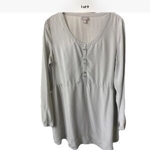 J Jill Washable Silk Tunic Top Sz 3X Light Gray Long Sleeve w/hidden pockets!