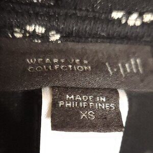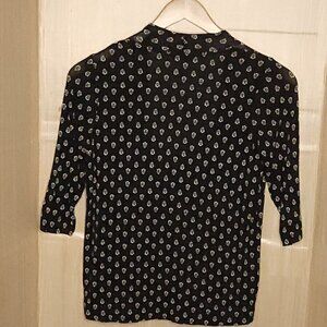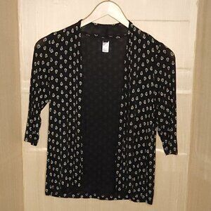 J. Jill Wearable Collection black stretchy open front top white geometric print XS. Gently used condition. Measurements are: 16” sleeve, 25” from shoulder to hem, and approximately 19” from armpit to armpit.