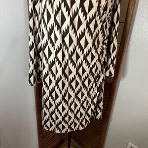 J. Jill Wearable Collection Faux Wrap Dress Tan And Brown Geometric Dress Size L in good condition pet friendly non smoking home.