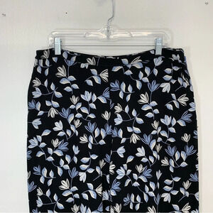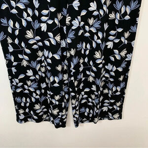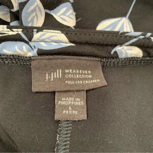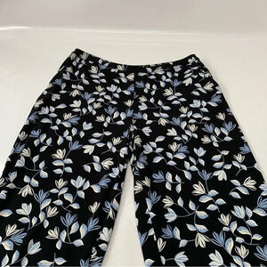 J Jill Wearable Full Leg Cropped Pants Lage Petite Pull On Black Blue Floral