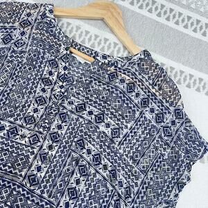 J. Jill Wearever Blouse Tunic Tribal Geometric Print High Low Hem XS Women's