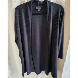 J Jill Wearever Cardigan Women Med Black Long Open Front Metallic Silver 15948