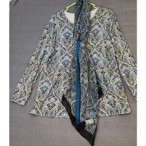J. Jill Wearever Collection 100% Silk Paisley Scarf & Matching Tunic Rayon Spandex blend size LP. Both pieces are in excellent used condition, no stains or holes. Smoke-free home. Check out my other items. I will combine shipping