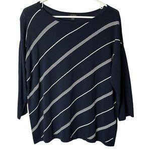J Jill Wearever Collection Blue & White diagonal striped sweater size small