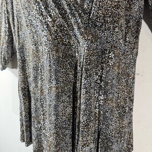 J.Jill Wearever brown and black speckle print knit faux wrap top with peplum