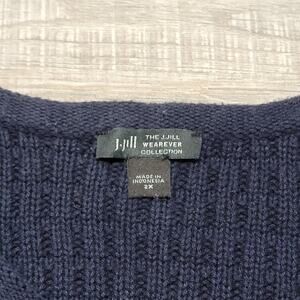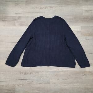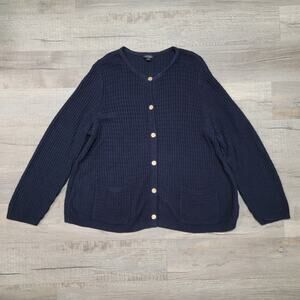 J Jill Wearever Collection Cardigan Sweater 2X Navy Blue Gold Button Waffle Knit