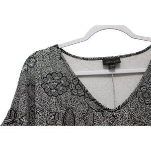 The J. Jill Wearever Collection Dress is a stylish and versatile piece for petites, featuring a flattering V-neckline and short sleeves. The floral pattern in black adds a touch of preppy charm, perfect for casual occasions like travel or everyday wear. Made from a blend of spandex and rayon, this knee-length shift dress offers stretch for a comfortable fit. Ideal for summer, fall, and spring, this classic piece with a casual style is a must-have for any woman's wardrobe.