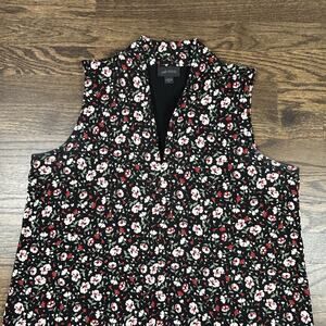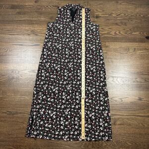 J Jill Wearever Collection Dress Womens Medium Black Floral Sleeveless Midi