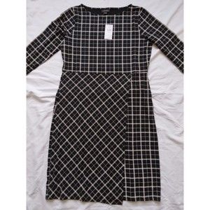 J Jill Wearever Collection Faux Wrap Stretch Black White Windowpane Womens Small.