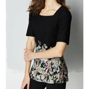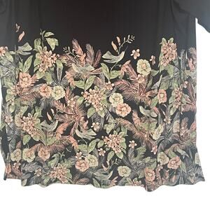 J. Jill Wearever Collection Floral Humming Bird Top Womens XL Black Tunic Tee