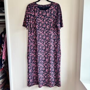 J. Jill Wearever Collection Floral Shift Dress Navy Blue Pink Short Sleeve Sz MT
