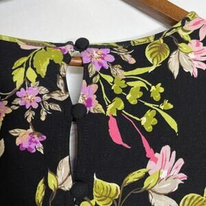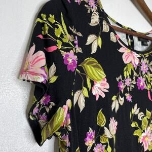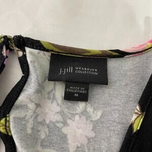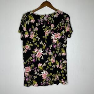 J Jill Wearever Collection Floral Top M Black Pink Short Sleeve Stretch Tee