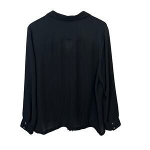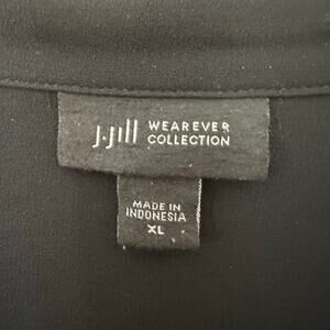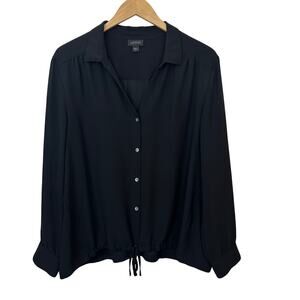J. Jill Wearever Collection Women’s Black Blouse Button Up XL Hem Cinch Tie Top Semi Sheer