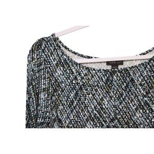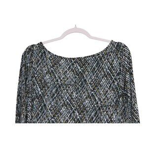 The J. Jill Wearever Collection Midi Dress in size Medium is a stylish and versatile option for casual occasions. This dress features a geometric pattern in a vibrant blue color, with 3/4 sleeves and a boat neckline for added flair. Made from a blend of spandex and rayon, it offers a comfortable stretch fit perfect for the warmer seasons of summer, fall, and spring. The shift and A-Line silhouette of the dress makes it a classic and colorful option for any woman's wardrobe.