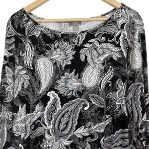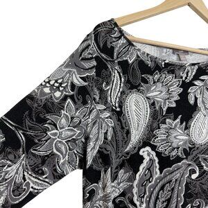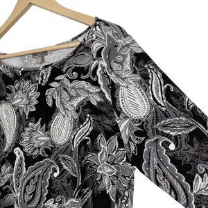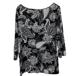 J. Jill Wearever Collection Paisley Floral Top Large Stretch Tunic 3/4 Sleeves