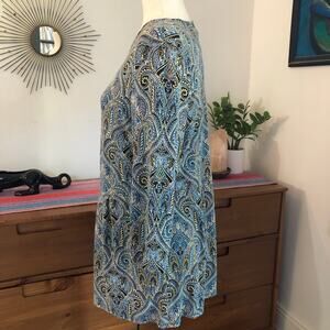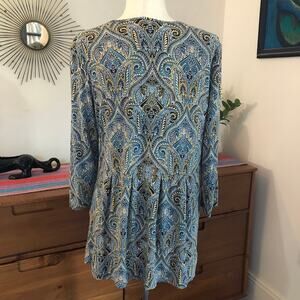 J. Jill Wearever Collection Paisley Peplum Tunic Top Blouse M Boho Artsy Casual