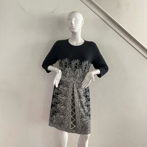 J. Jill Wearever Collection Paisley Shift Black Gray Dress XL