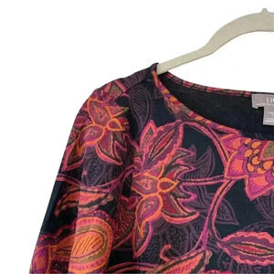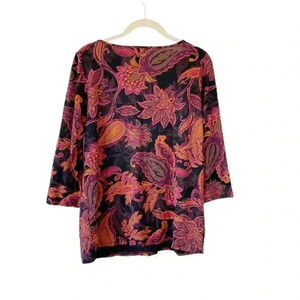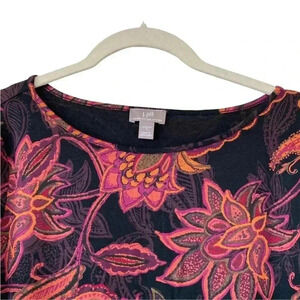 J. Jill Wearever Collection Paisley Top Size Small 3/4 Sleeves Crewneck Stretch Pink Black Stretch