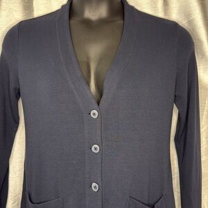 J. Jill Wearever Collection Navy Button Up Ribbed Long Line Long Sleeve Cardigan