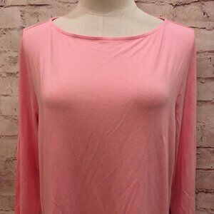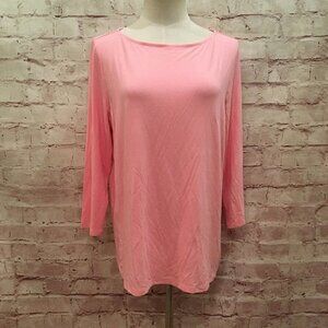 J Jill Wearever Collection Pink Boat Neck Top Stretch Jersey Knit 3/4 Sleeve - M