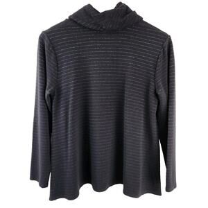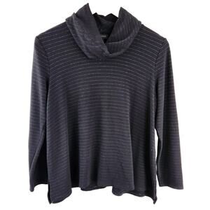 J Jill Wearever Collection Size Small Black Silver Striped Cowl Neck Sweater