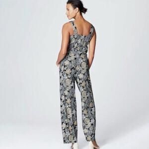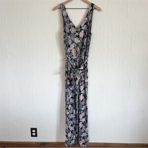 J Jill Wearever Collection Sleeveless Wide Leg Belted Jumpsuit Medium Floral