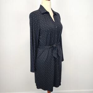 J. Jill Wearever Collection Stretchy Shirt Dress Size M Black Polka Dot Belted