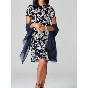 J Jill Wearever Collection Sz XS Blue Floral Print Soft Perfect T-Shirt Dress