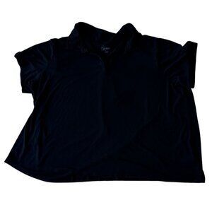 J Jill Wearever Collection Top Womens 3X Black Pleaded Back Collar Short Sleeve
