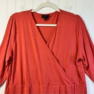 J Jill Wearever Collection V Neck Faux Wrap Front 3/4 Sleeve Top Coral L