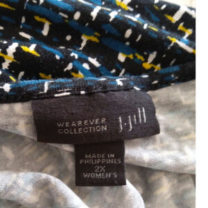 J. Jill Wearever Collection V-neck top in 2X black blue pattern 3/4 sleeve