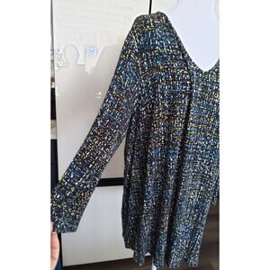 Jay Jill wherever collection V neck 3/4 sleeve blue black white pattern size 2X boho flowy and lightweight comfortable in good pre-owned condition basic signs of use no major flaws.