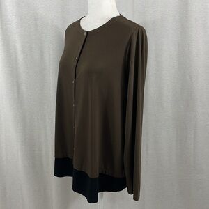 J. Jill Wearever Collection Womens Button Up Cardigan Top Brown Black Size LP