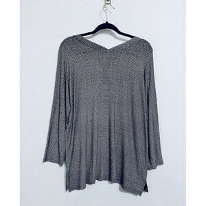 J Jill Wearever Collection Womens Large V Neck Print Top 3/4 Sleeve Soft Rayon
