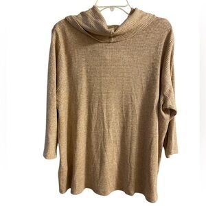 J Jill Wearever Collection XL Top Ribbed Tan Cowl Neck