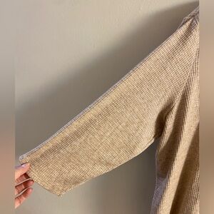 Excellent condition J Jill Wearever Collection top in tan. Ribbed knit with a cowl neck. Lightweight material. Three-quarter sleeves.