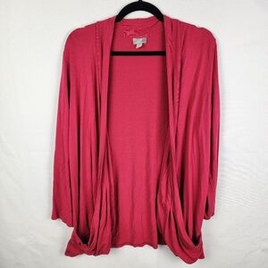 J. Jill Wearever Cranberry Red Pink Slouchy Pocket Open Cardigan Size Large